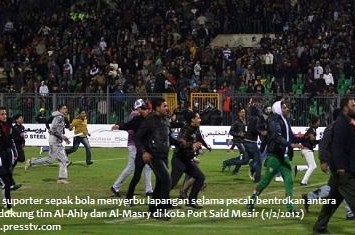 Di akhir pertandingan antara tim lokal Al-Masry dengan tim Al-Ahli di stadion kota Port Said, ribuan pendukung sepakbola terlibat kerusuhan. Sedikitnya dilaporkan 74 orang tewas dan sekitar 1.000 orang terluka dalam insiden ini.