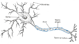 Dendritnya berhubungan dengan neurit neuron lain dan neuritnya berhubungan dengan efektor atau alat tubuh pemberi tanggapan terhadap suatu rangsangan. Fungsinya untuk menghantarkan impuls motorik dari susunan saraf ke efektor.